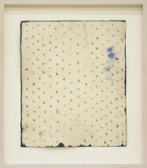 Johannes Regin bietet mit seinen sensiblen Zeichnungen einen erlösenden Ausgleich zu den technischen Rastersystemen, denen unsere Augen täglich ausgesetzt sind, mit intuitiv gesetzten Punkt- und Strichfolgen auf Papier, Fundstücken, Planen und auf Innen- oder Außenwänden. Er reagiert auf das von ihm ausgewählte Material, wenn es um die Größe seiner Punktfolgen geht und ob sie zeichnerisch oder malerisch aufgesetzt bzw. ins Fundstück hineingestochen oder -gestanzt werden müssen. Verdichtung und Komplexität wachsen seinen Überzeichnungen zu, indem Spannungsverschiebungen im Rhythmus der Punktraster, kleinste Abweichungen, durchsickernde alte Farbspuren und Zeichenfragmente zusammengeführt werden und doch je für sich wahrnehmbar bleiben. Oft wird sanft berührend ein Schwebezustand hervorgerufen, farbig gesetzte Rasterpunkte können allerdings auch zu überflutenden Wellen werden. Auf dem Weg des Findens und Erfindens durchquert Johannes Regin das irrationale Terrain Berlins, um sich hier zu behaupten.