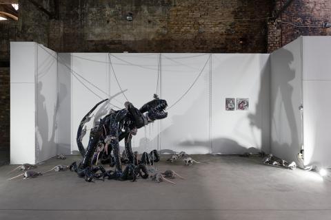 Die Ratten haben sich bereits der Galerie genähert, und auch wenn sie "nur" aus Stoff bestehen, sind sie doch ziemlich störend. Mary-Audrey Ramirez fertigt Skulpturen aus Stoff und näht, oder besser gesagt stickt, Bilder. Sie bricht mit den traditionellen Vorstellungen, die dieses Material repräsentiert, und beim Anblick dieser seltsamen Kreaturen ist man hin- und hergerissen zwischen einem Gefühl des Schauderns und dem Wunsch, sie zu knuddeln. Ihre Bilderwelt, die sowohl unsere Ängste als auch unsere Sehnsüchte widerspiegelt, zeigt im Gegensatz zu dem zarten Ausgangsmaterial oft brutale oder gebrochene Charaktere und Motive.